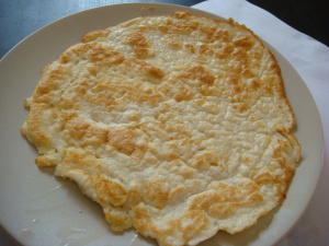 Heat a frying pan with a pat of butter on a medium heat and pour all the batter in the pan. Tilt the pan until the batter covers all of the bottom of the pan.